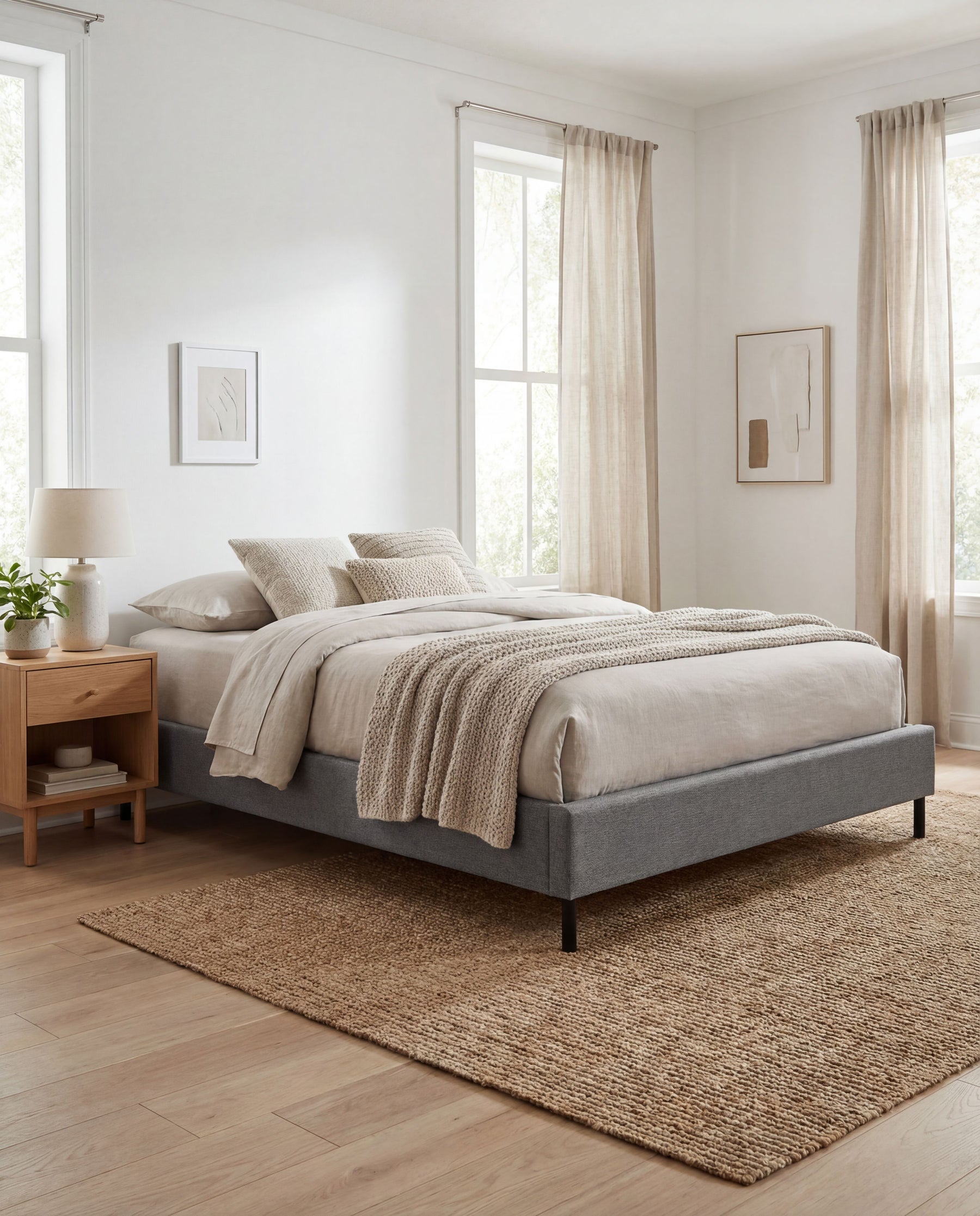 Contemporary Upholstered Finish: High-quality gray woven fabric adds a refined, modern look.