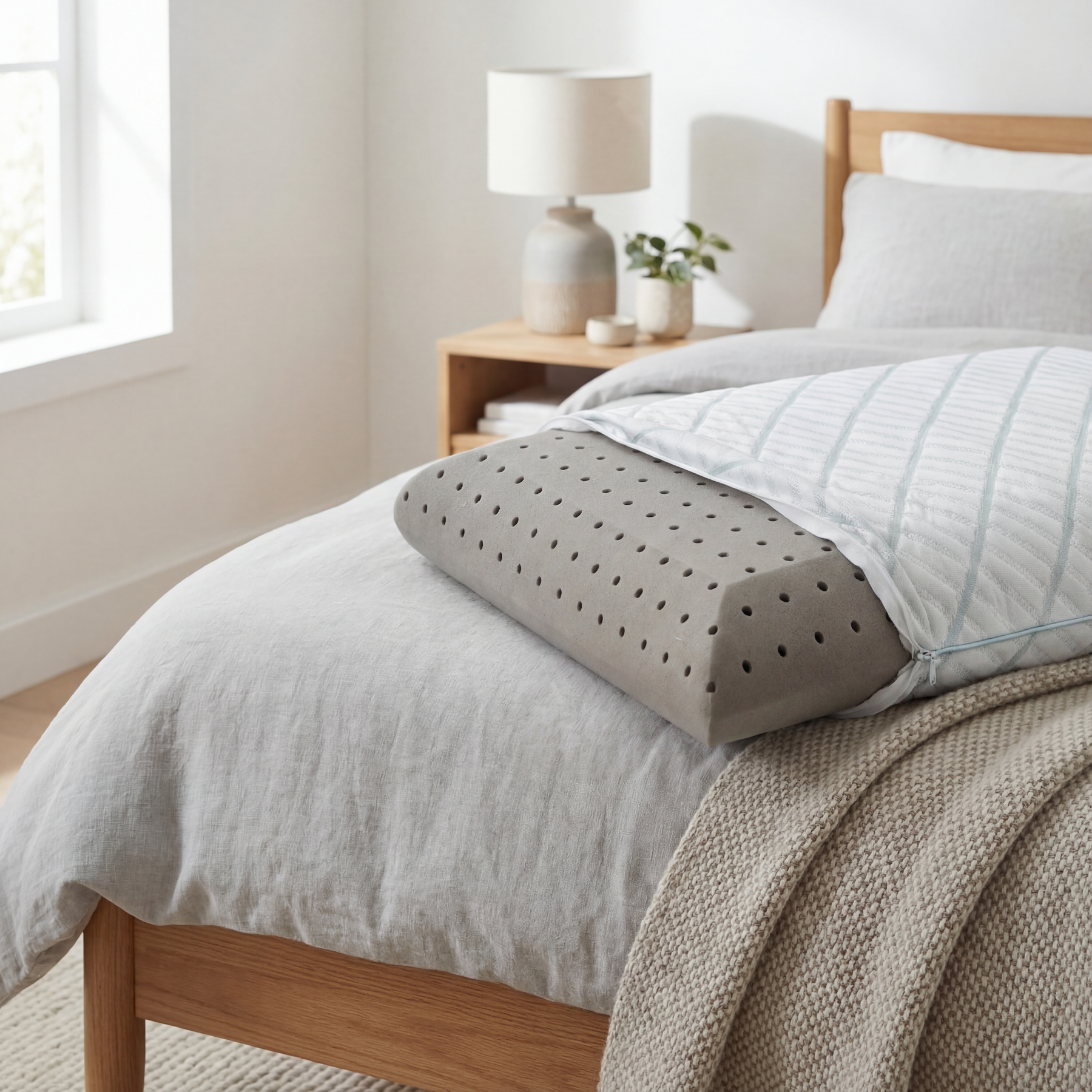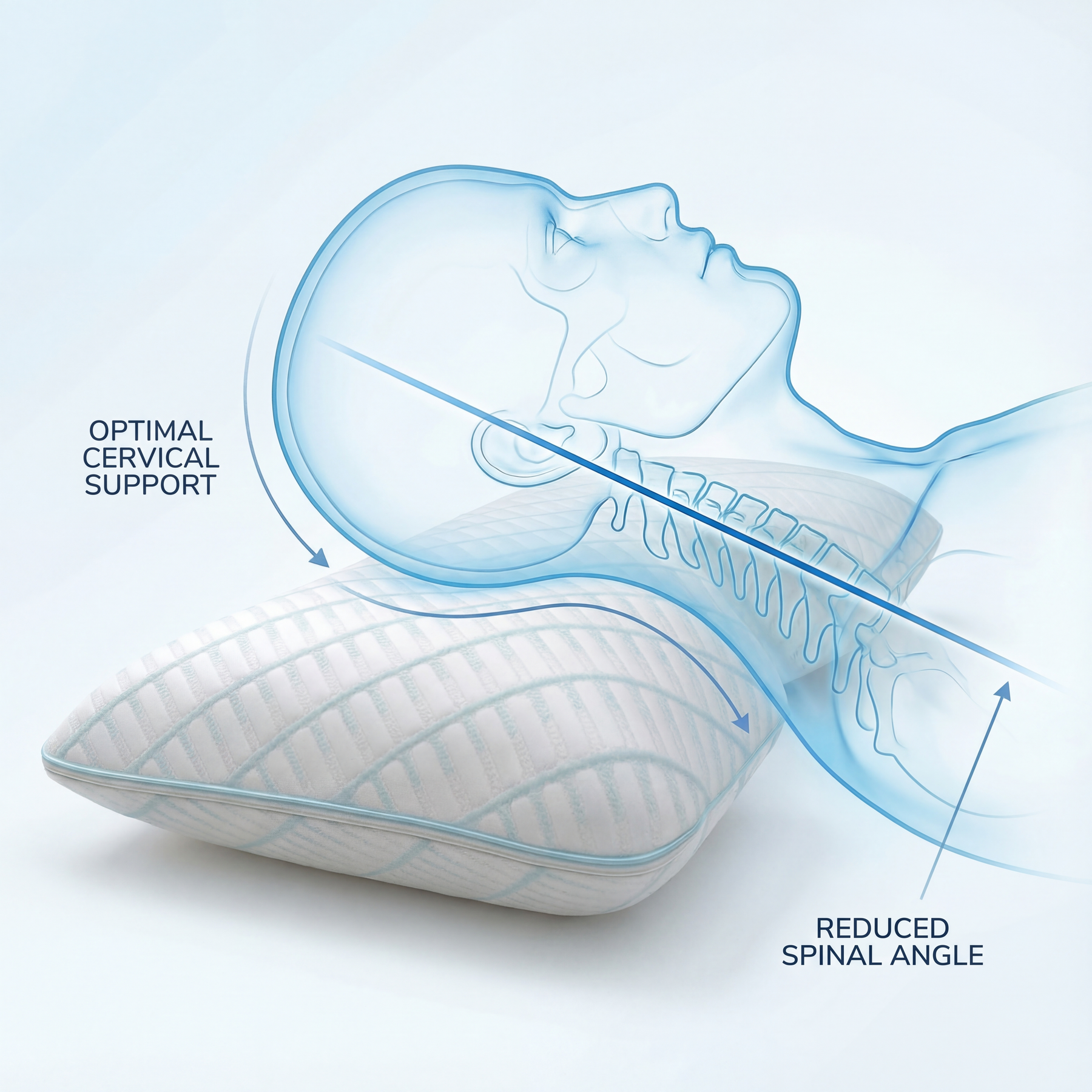 The Ergonomic Pillow with Active Gel Cooling for Stable Alignment.