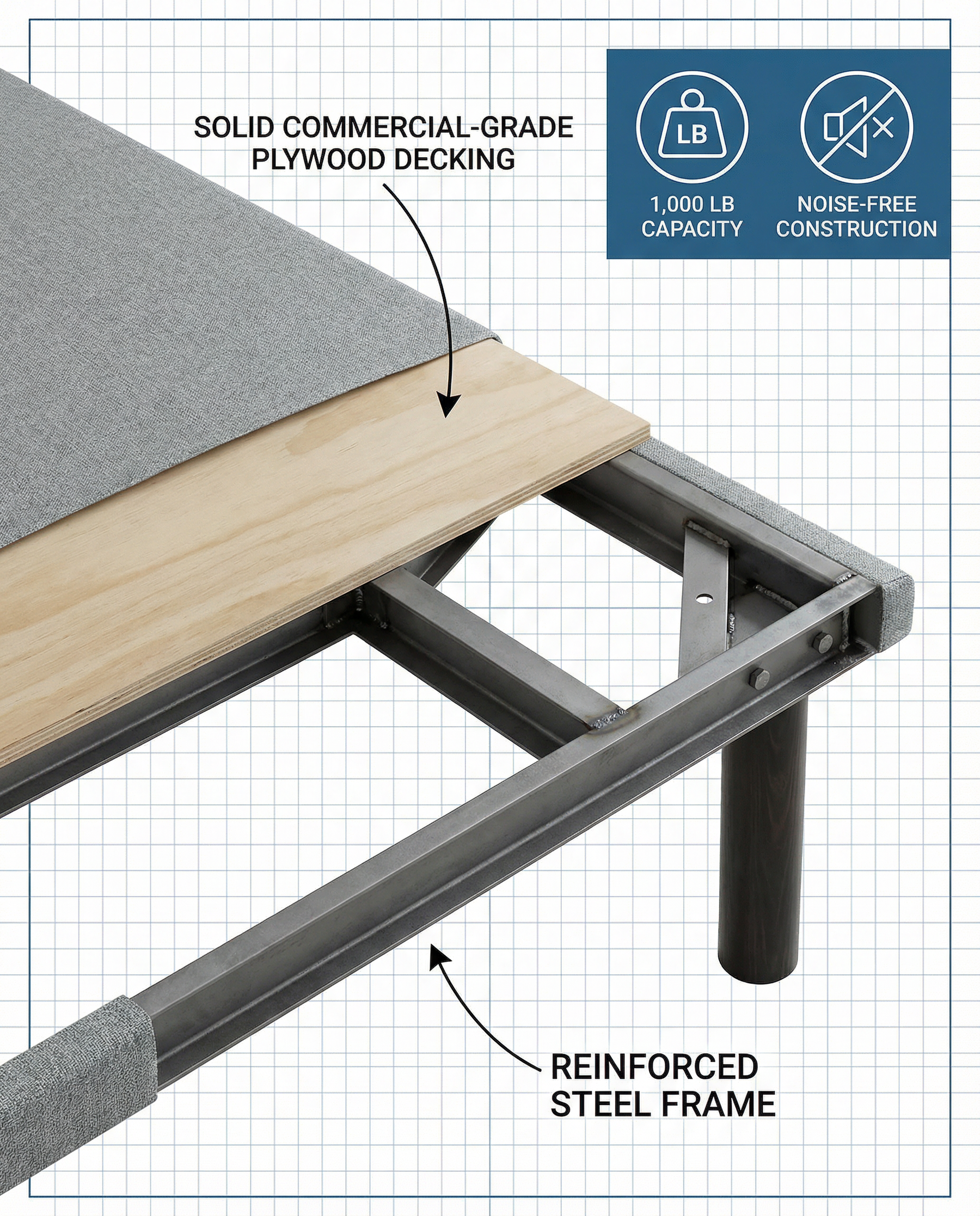 Heavy-Duty 1,000 lb Support: Reinforced steel frame and commercial-grade plywood provide exceptional stability.
